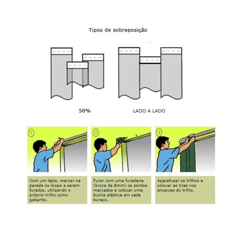 Os trilhos para cortinas de PVC também são projetados para serem de fácil colocação e instalação, justamente para agilizar o processo e permitir ajustes conforme a necessidade do cliente. Instalação simples: basta parafusá-los na estrutura desejada (porta, parede ou teto).